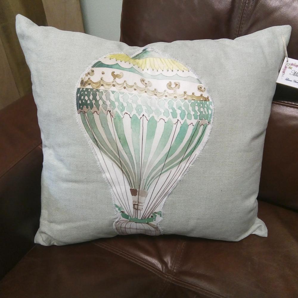 Cojín variete relleno con algodón sintético y tapizado con tela de lino. Parche de globo tejido estilo “Patch”