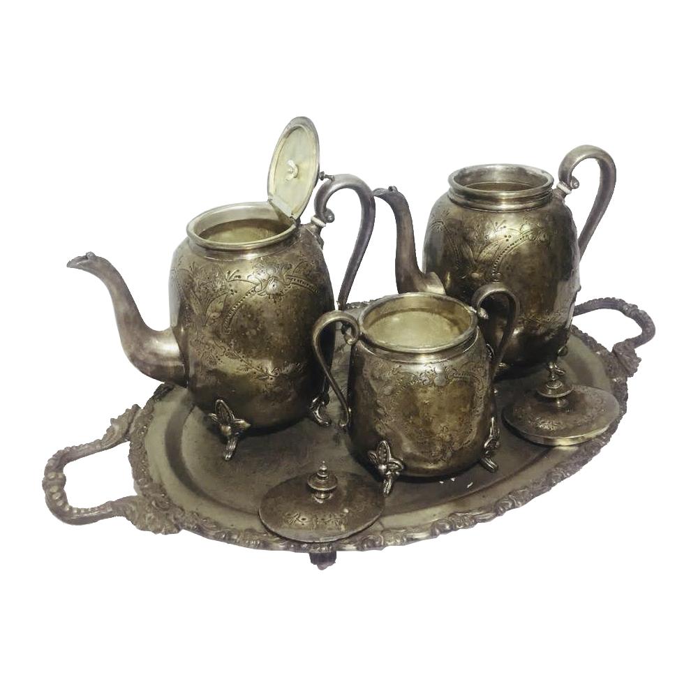 Antiguo juego de té de plaque con su bandeja de los años 20 para decoración