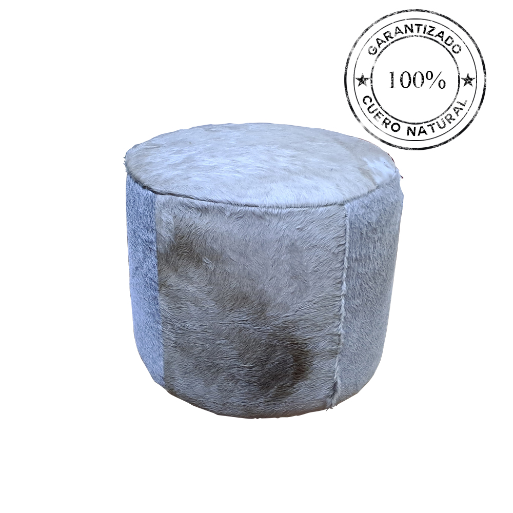 Puff de cuero con tapiz de piel. Estructura de madera natural.